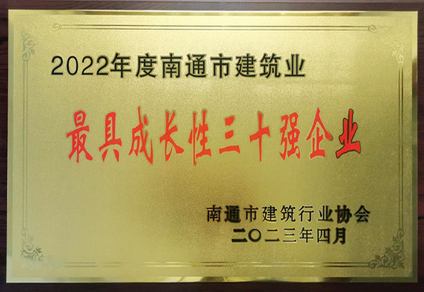 我公司獲評南通市建筑業最具成長性三十強企業 [2023-04-10]