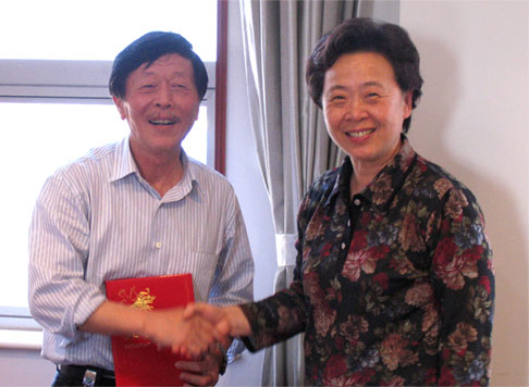 市文明辦主任、市委宣傳部副部長葉小平為張武榮董事長頒發“南通市優秀思想工作者”證書
