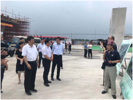 6月24 日下午,揚州市人大常委會、市政府領導一行對揚州市城市快速路網建設開展專題督查,視察我公司承建的揚州江平路快速化改造一期工程并在項目部會議室召開座談會。